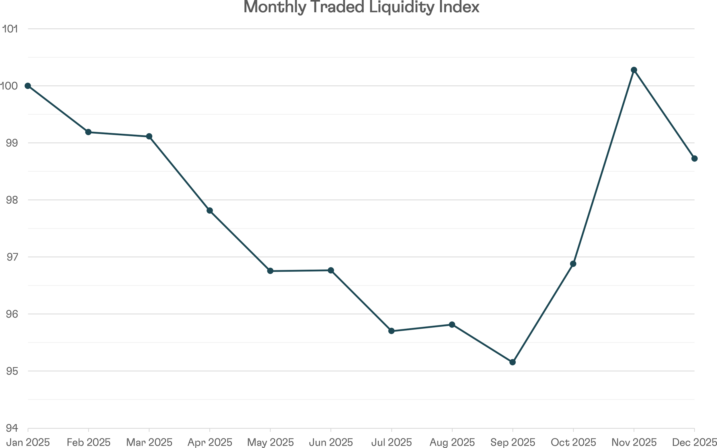 This shift helps explain why Q4 emerged as an inflexion point across much of the data: liquidity stabilised first, then prices followed.